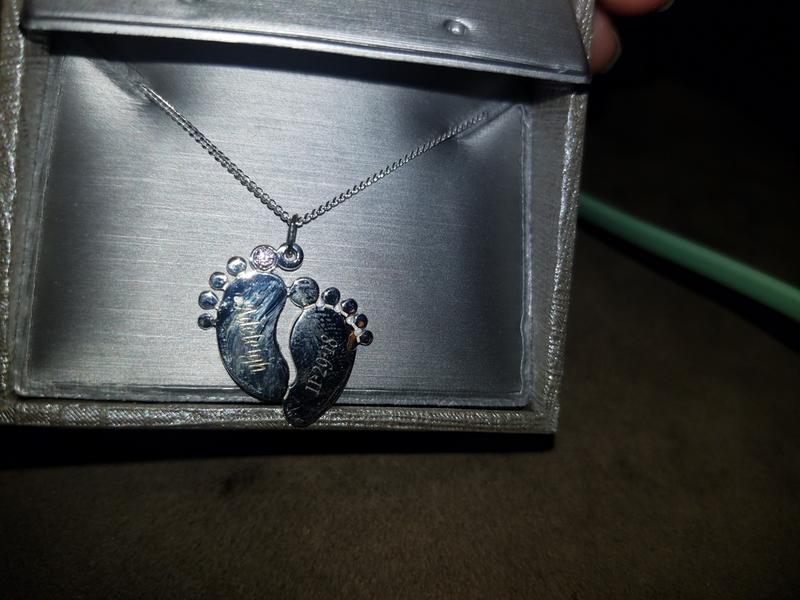 Celebrate the miracle of birth with this commemorative necklace. This necklace is sure to be treasured for a lifetime. Many jewelers make baby-themed pendants such as a little foot.